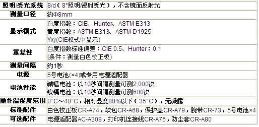 CR-14使用國際標(biāo)準(zhǔn)及眾所周知的CIE、ASTM和亨特爾白/黃度指標(biāo)進(jìn)行測量。